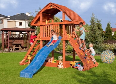 POZOR !!! U TOHOTO HŘIŠTĚ POUZE PLATBA PŘEDEM, PO ZAPLACENÍ ZÁVOZ DOPRAVCEM ZDARMA. Dětské hřiště MARIMEX PLAY 018 Akát může využívat až 9 dětí současně.